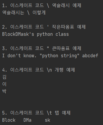 2. 파이썬 문자열에서 쓰이는 이스케이프 코드