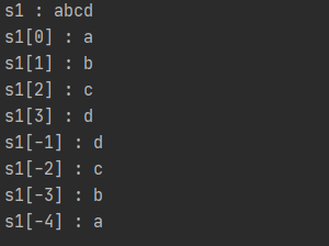 print(f"s1[-4] : {s1[-4]}")