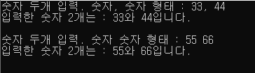 printf("\n숫자 두개 입력. 숫자 숫자 형태 : ");