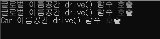cout << "Car 이름공간 drive() 함수 호출 " << endl;