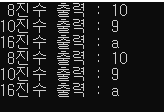 각각 세 함수는 이후 나오는 변수의 값을 세팅해주는 것이기 때문에 한번 세팅을 하면 다시 되돌리지 않는한 진수가 정해져 버립니다.