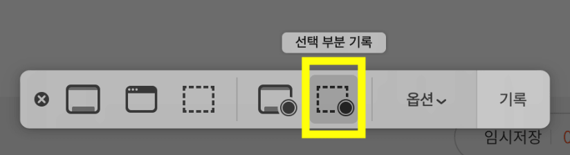 2-2) 그 오른쪽에 있는 것이 일부 화면을 녹화하는 버튼입니다.