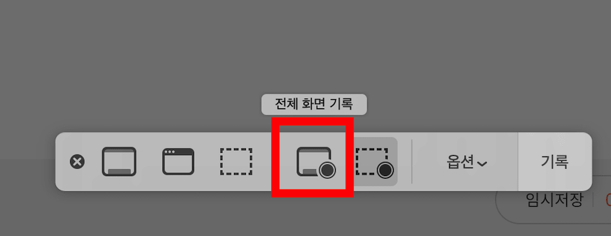 2-1) 가운데 쪽에 이렇게 생긴게 전체 화면을 녹화 하는 버튼이고