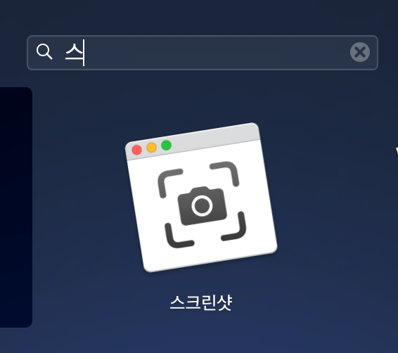앱을 찾는 방법은 앱을 모아 둔 Launchpad 로 가서 "스크린샷" 앱을 찾으면 됩니다.