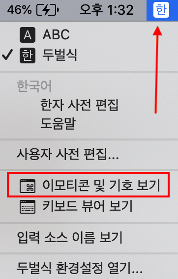 2. 맥북 이모티콘 키보드 메뉴 사용