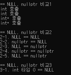 cout << endl << "== NULL, nullptr 비교1" << endl;