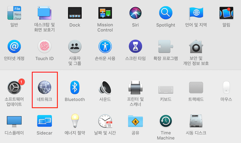 1-2) 시스템 환경설정의 네트워크를 누릅니다.