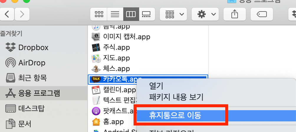2. 맥북 finder 에서 앱 삭제