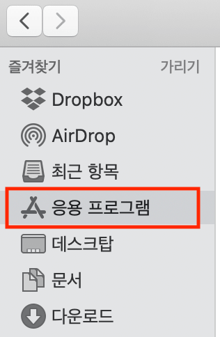 2-3) 이제 다시 finder로 돌아와서 즐겨찾기에 응용프로그램 항목이 있는걸 보고 기쁜마음으로 클릭해 줍니다.