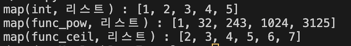 알아서, 자동적으로 리스트를 함수에 적용해서 map 객체를 반환해 줍니다. 우리는 그걸 list로 형 변환해서 사용하면 됩니다.