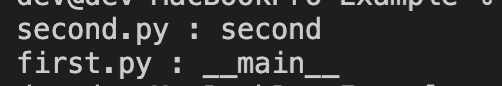 반면에 메인으로 실행시킨 first.py 파일에서 __name__ 변수의 값은 first.py : __main__ 인 것을 볼 수 있습니다.
