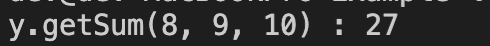 print(f"y.getSum(8, 9, 10) : {result}")