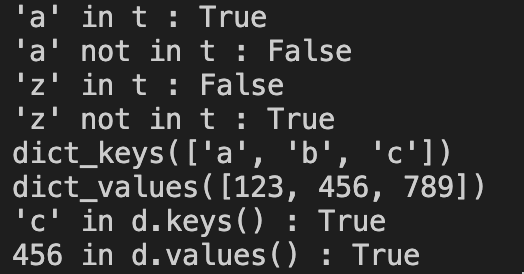 이런 식으로 딕셔너리에서 키, 벨류 모두 in 연산을 통해서 값이 있는지 확인할 수 있습니다.