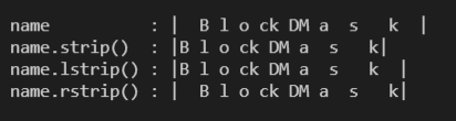 print(f"name.lstrip() : |{result2}|")