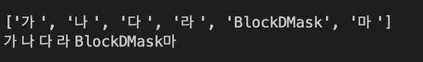 arr = ['가', '나', '다', '라', "BlockDMask", '마']