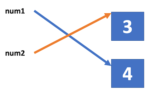 그럼 num1, num2는 다른 곳을 가리키게 됩니다.