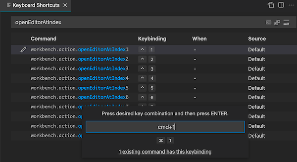 command에 workbench.action.openEditorAtIndexN 번호를 바꿔주시면 됩니다.