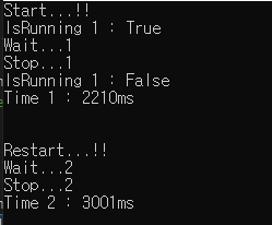 Restart() 메서드를 이용해서 시간 측정을 다시 시작해보기도 했습니다.