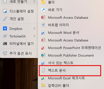 바탕화면 → 오른쪽 클릭 → 새로 만들기 → 텍스트 문서