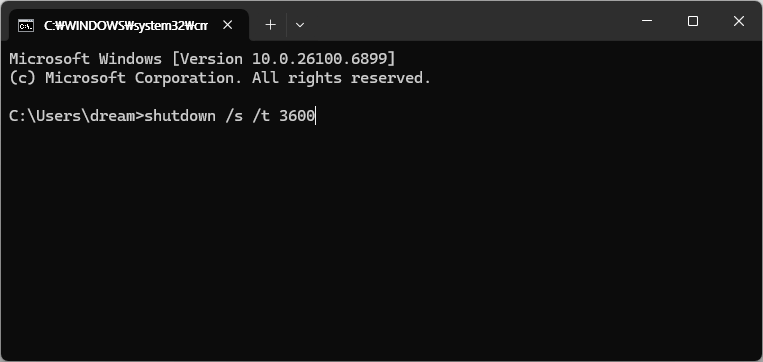 shutdown /s /t 3600