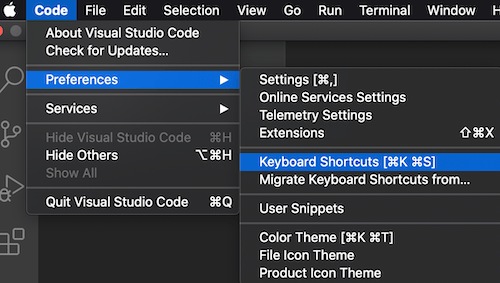 2-1-1. Code -> Preferences -> Keyboard Shortcurs